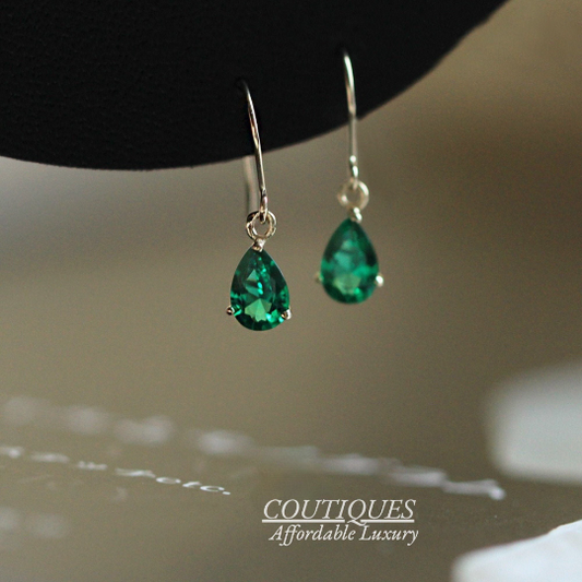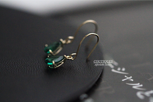 A Pair, 9K Solid Gold Dainty Green Zirconia Dangle Stud Earrings, Real Gold Dangle Earrings, Minimalism Hoop Earrings, Emerald Dangle Stud