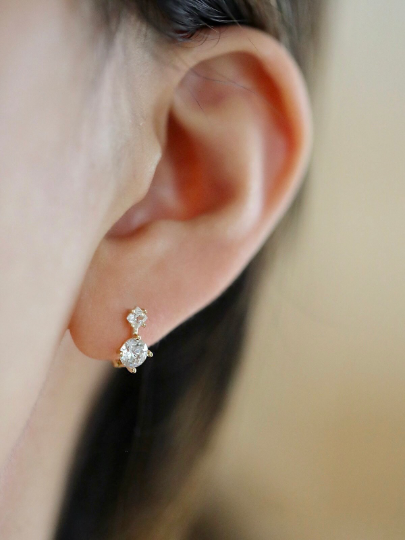 14K Solid Gold Dainty Zirconia Threading Earrings, Real Gold Delicate Dangle Threader Earrings, Minimalism Gold Earrings, Christmas gift
