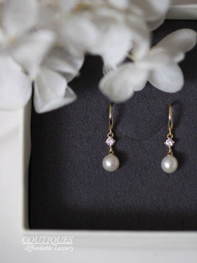 A Pair| 9K SOLID GOLD Dangle Freshwater Pearl Earrings, Mini Drop Real Gold Earrings, Real Pearl Dainty Fancy Gemstone Earrings
