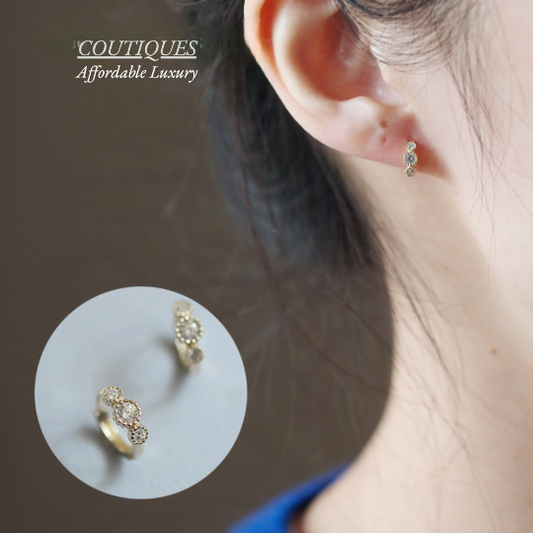 A Pair 9K Solid Gold Stunning Dainty Hoop Earrings, CZ Diamond Hoop Earrings, Hinged Solid Gold Everyday Earrings, Christmas Gift For Her