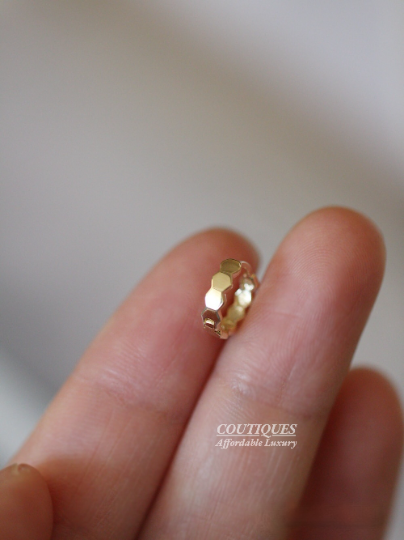 9K Solid Gold Beehive Dainty Mini Hoop Earrings, Real Gold Delicate Small Latch Back Hoop, Fancy Gift For Her, Minimalism Hoop Stud