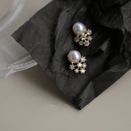 A Pair 9K Solid Gold Dainty Natural Pearl Earrings, Freshwater Real Gold Earrings, gift for her, Flower Zirconia Stud Earrings Inactive6:47
