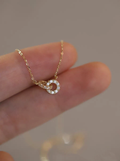 Solid 14K Gold Dainty Huggie Zirconia Necklace, Real Gold Delicate Zirconia Circle Necklace, Gift For Her, Minimalism Gold Necklace