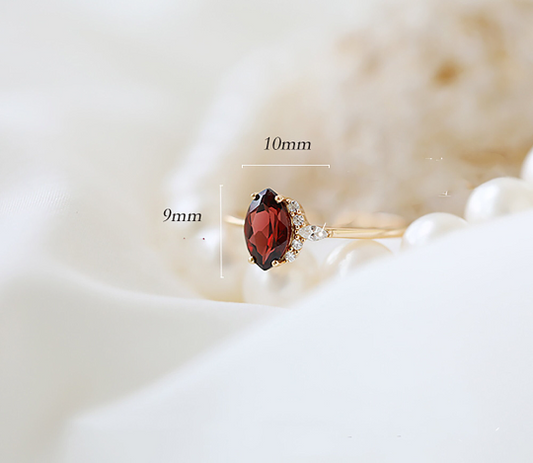 Natural Mozambique Ruby Garnet, Gemstone Ring, Marquise Cut, Silver 925, Stackable, Dainty, Petite Vintage, Sterling Silver