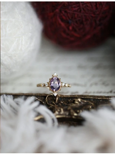 Natural Amethyst Stone Ring, Unique Statement Ring, Gemstone Ring, Silver 925, Vintage Ring, Diamond Cut, Sterling Silver, Gift For Her