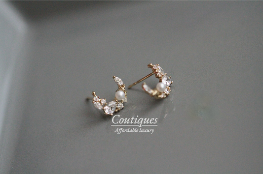 A Pair | Valentines Gift 9K Solid Gold Dainty Natural Pearl Earrings, A pair of Flora earrings, Real Gold Earrings, Sparkly Moon Stud