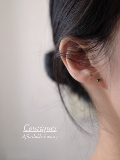 A Pair | Solid 14K Gold Dainty Zirconia Emerald Mini Stud Earrings, 14K Real Gold Green Zirconia Cube Stud Earrings, Gift For Her
