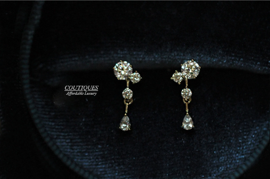 Solid Real Gold Dainty Dangle Drop Stud Earrings, Solid Gold Man Made Diamond Delicate Stud Earrings, Gold Stud Earrings Gift for Her