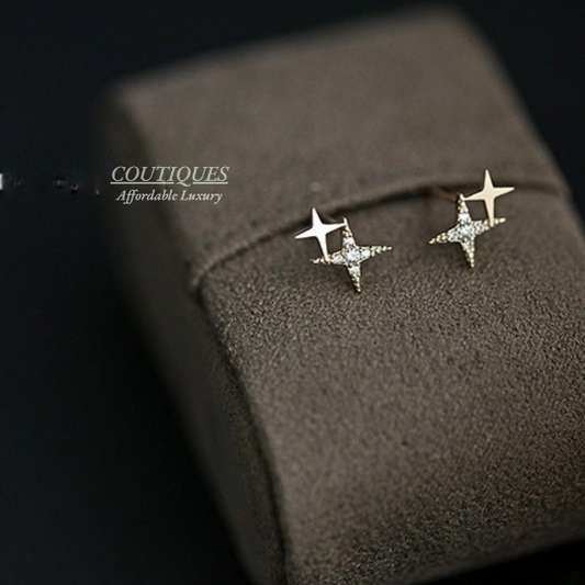 9K Solid Gold Dainty Star Stud Earrings, Real Gold Star Gold Stud, Minimalism Gold Star CZ Stud Earrings, Delicate Gold Stud, Gift For Her