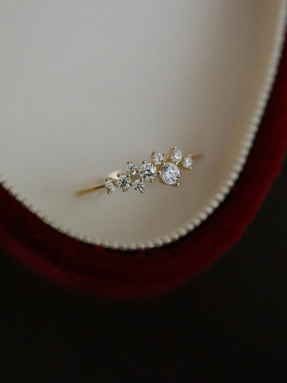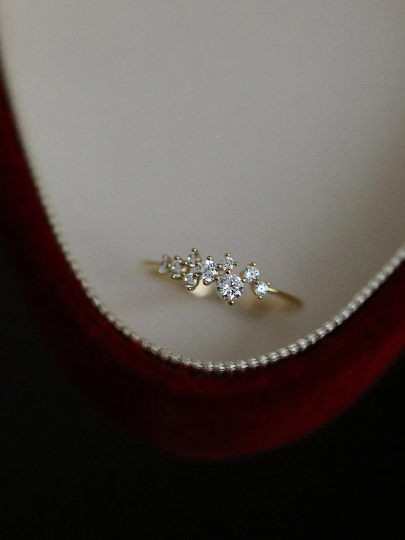 14K Solid Gold Cubic Zirconia Cluster Ring, Gold Dainty Ring, 14kt Gold Real Diamond Ring, Real Gold Statement Ring, Christmas Gift for Her