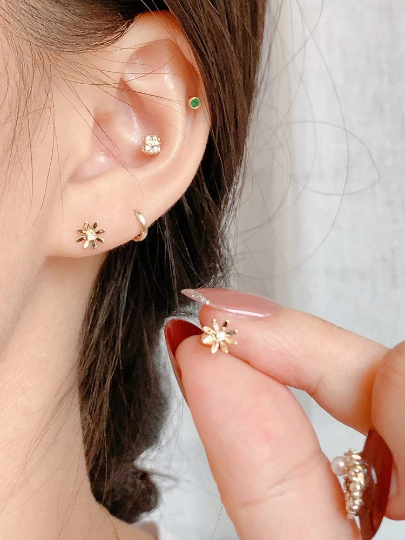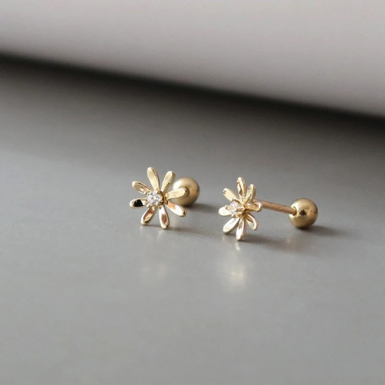 14K Solid Gold Dainty Daisy Floral Stud Earrings, Real Gold Screw Back Earrings, Flower Earrings, Minimalism Gold Stud, Gift For Her