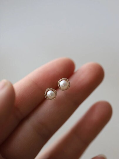 14K Solid Gold Fresh Water Pearl Stud Earrings/ Minimalist Dainty Pearl Earrings/ 14k Real Gold Earrings/ Gift for Her/ Pearl Gold Earrings