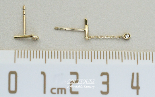 9K Solid Gold Dainty Asymmetric Stud, A Pair of CZ Delicate Real Gold Stud, Sparkly mini dangle earrings, fancy gift for her