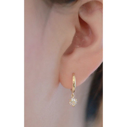 A Pair 9K Solid Gold Stunning Dainty Hoop Earrings, CZ Diamond Hoop Earrings, Hinged Solid Gold Everyday Earrings, Christmas Gift For Her