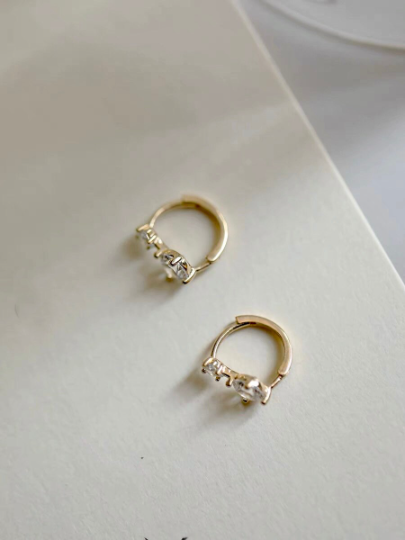 A Pair Solid 9k Gold Dainty Zirconia Hoop Earrings, Minimalism Gold Earrings, Real Gold Delicate Mini Hoops, Gift For Her Inactive